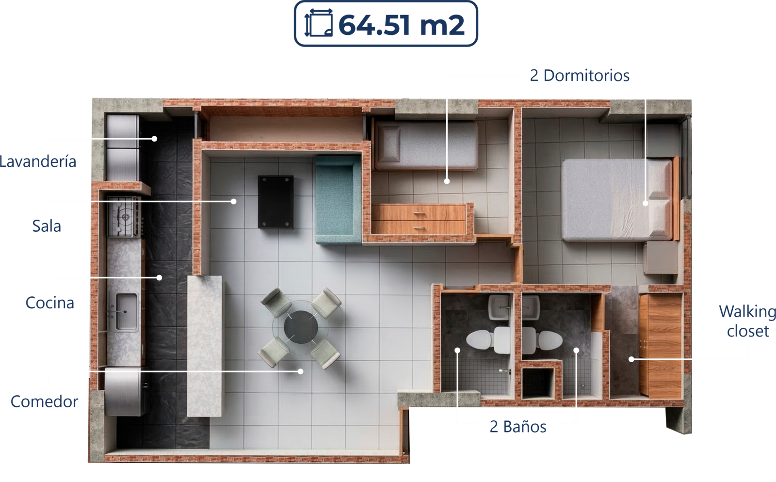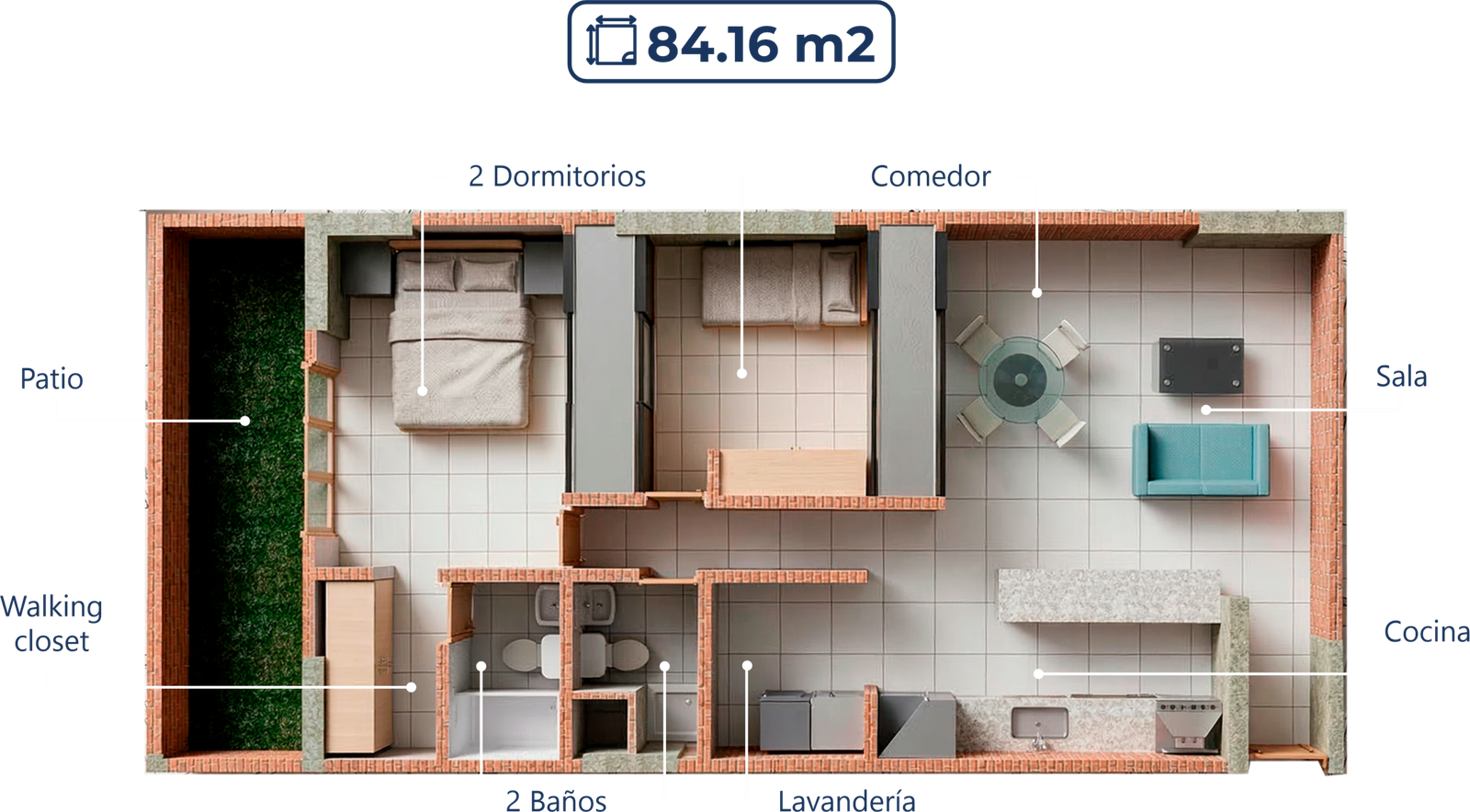 Perfecto para una vida práctica y cómoda, con espacios bien aprovechados.
