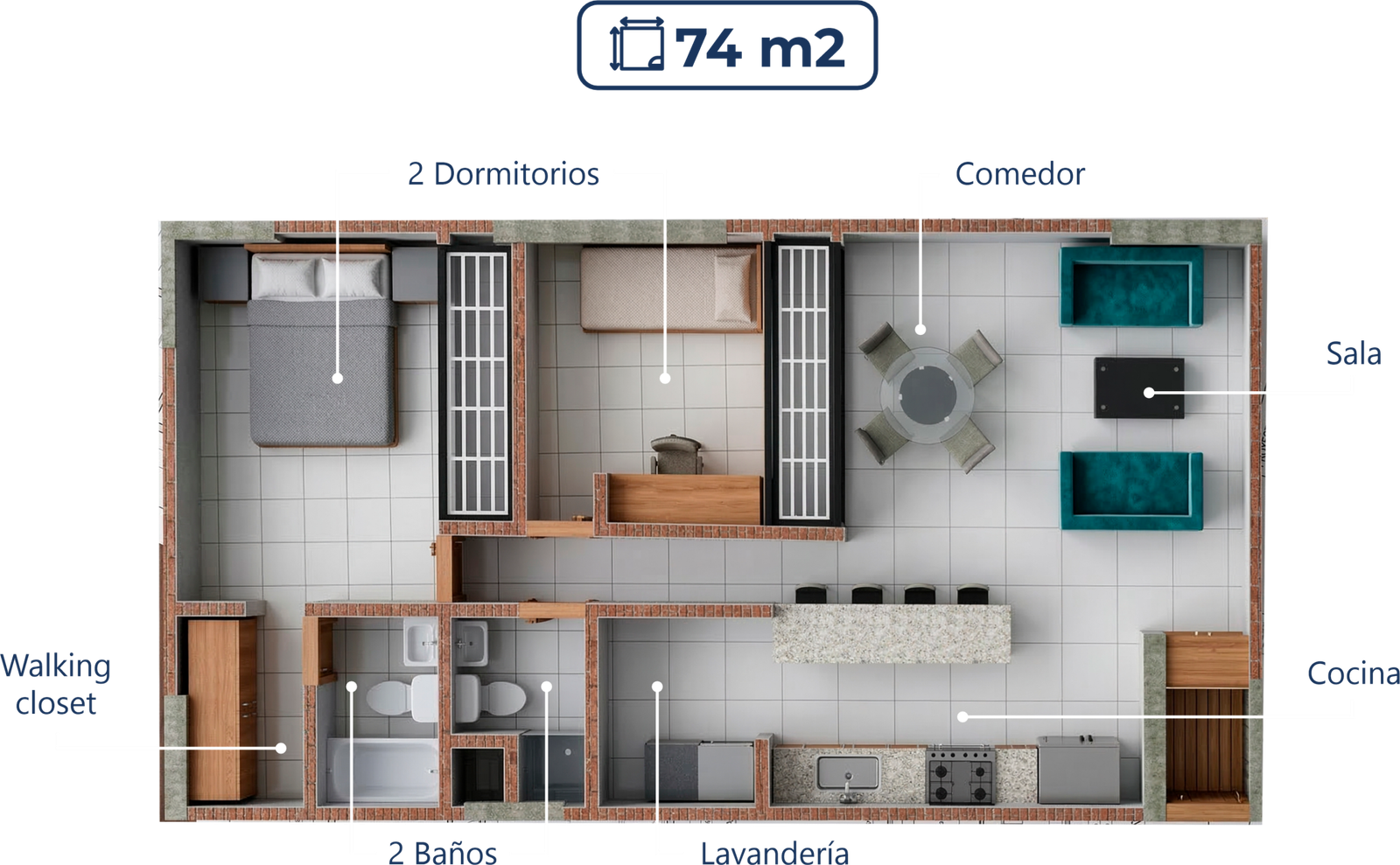 Ideal para familias que buscan comodidad, privacidad y una distribución funcional.